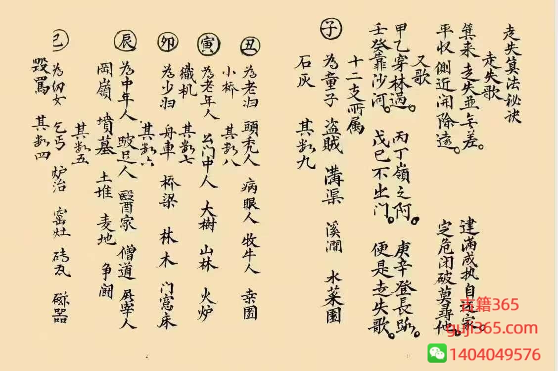 古籍365 » 清代古籍占卜《走失算法秘诀》44页手抄秘本